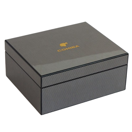 Хумидор с лого на COHIBA, гланцово покритие, облицован отвътре с испански кедър.