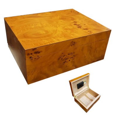 Cigar humidor with wooden veneer and matt finish with portable divider.