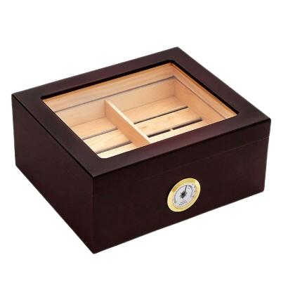 Хумидор за пури със стъклен прозорец, отвътре облицован с кедър.